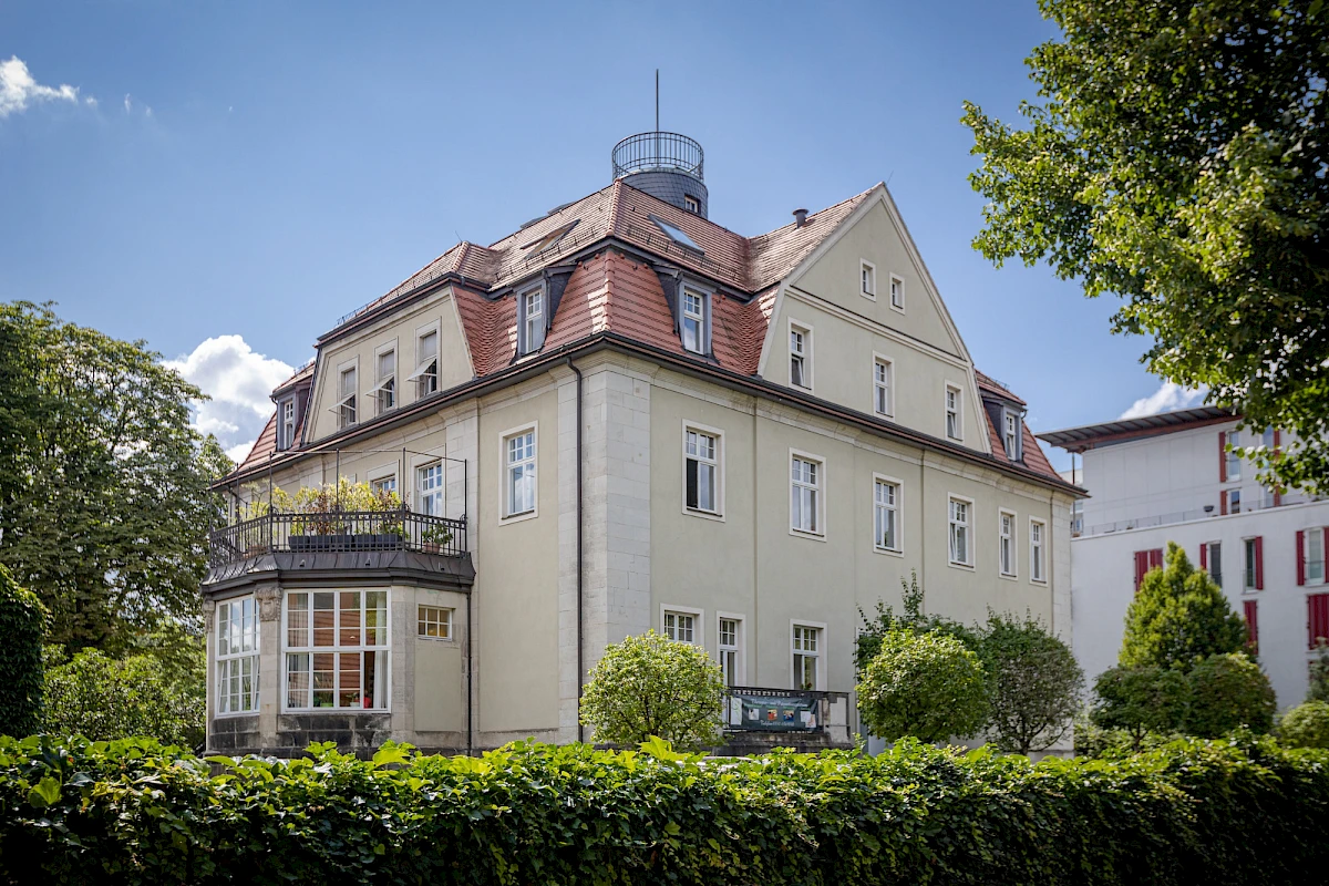 Unsere Amtsräume befinden sich im Dresdner Stadtteil Johannstadt in der Comeniusstraße 32. Die Stadtvilla Comeniusstraße 32 wurde im Jahr 1906 nach den Plänen des Architekten Johann Georg Heinrich Tscharmann, Sohn eines Notars, mit Sandsteingliederungen in neubarocken Formen gebaut und wird eingerahmt durch eine ursprünglich von dem Landschaftsarchitekten Großmann entworfene Gartenanlage. In ihrem zweiten Obergeschoss, welches barrierefrei zu erreichen ist, bietet die Stadtvilla großzügigen Raum für die Amtsstelle.